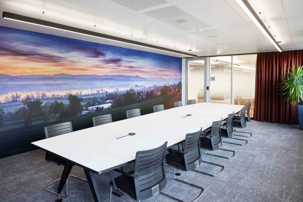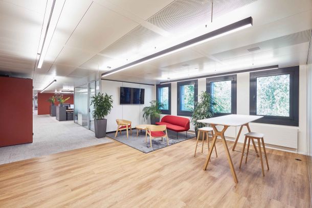 Innerhalb eines sehr sportlichen Zeitrahmens entwickelten die Spezialisten von Trispace ein Innenarchitekturkonzept, das der Kundin Genossenschaft GGA Maur eine grösstmögliche Flexibilität des Mieterausbaus erlaubt. In ehemaligen Büroflächen einer Bank wurden mithilfe von Raum-in-Raum-Lösungen Kollaborationsflächen in den offenen Arbeitsflächen realisiert. Die Gestaltung verbindet Elemente der Corporate Identity mit örtlichen Motiven, welche die lokale Verbundenheit betonen.
