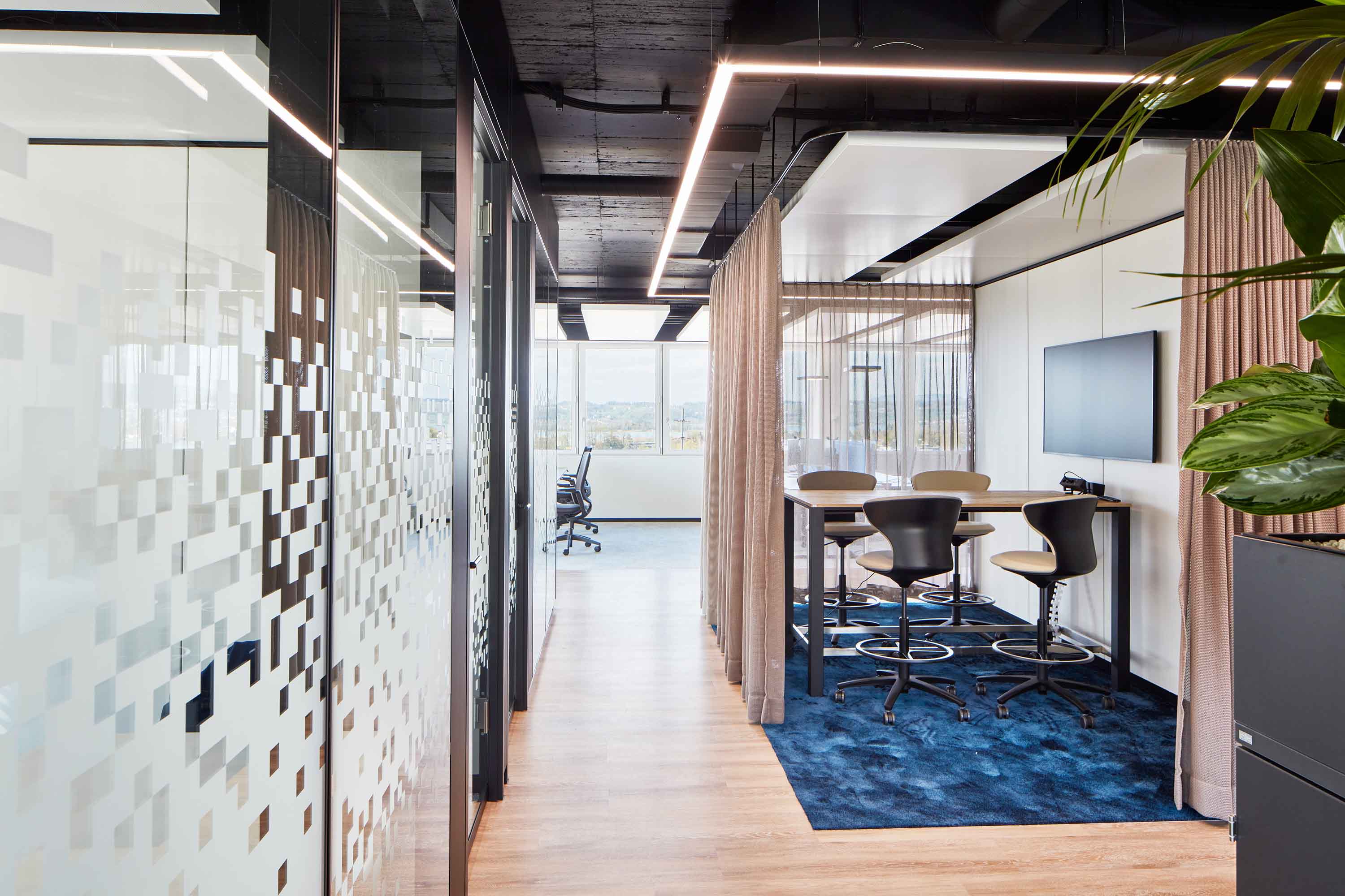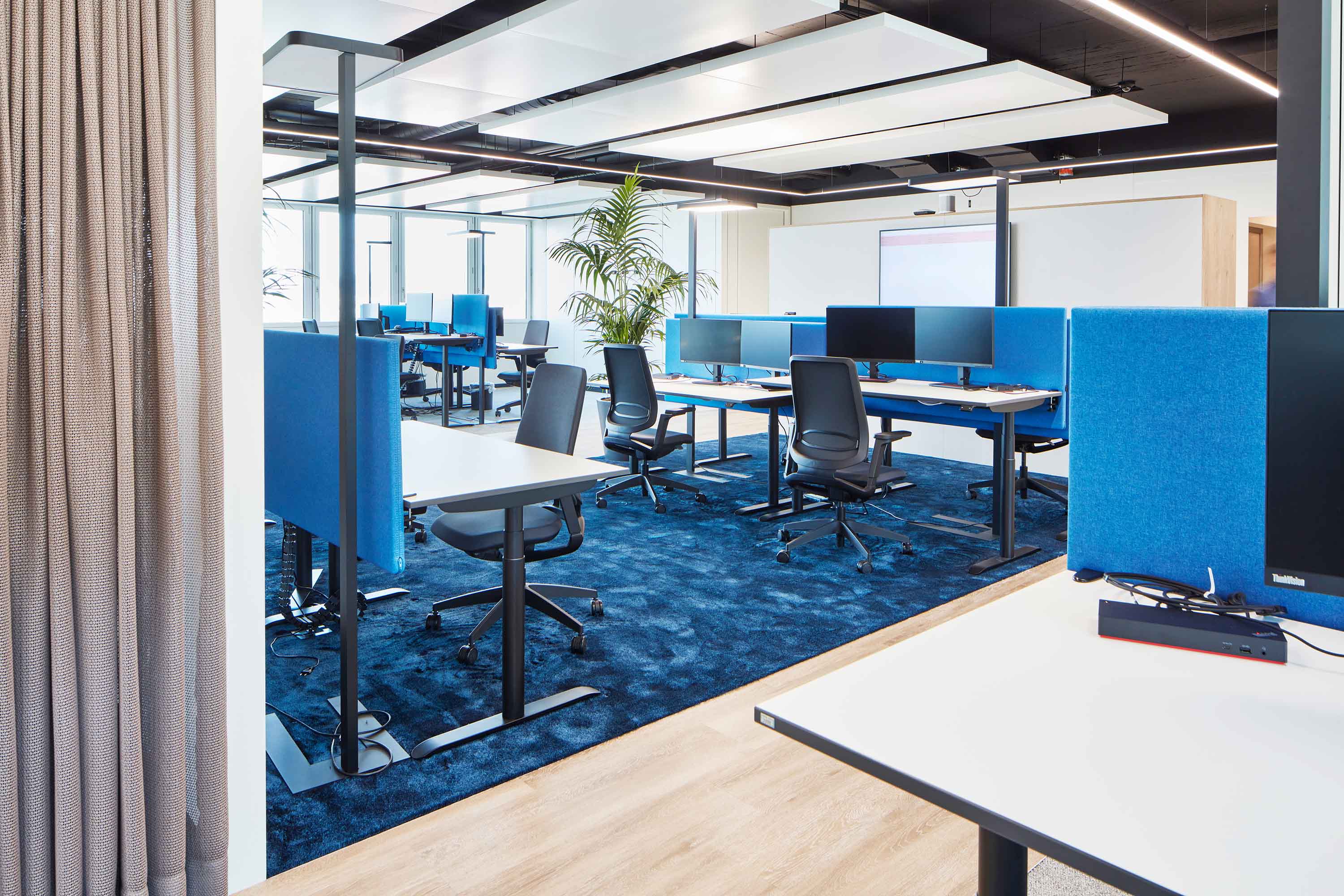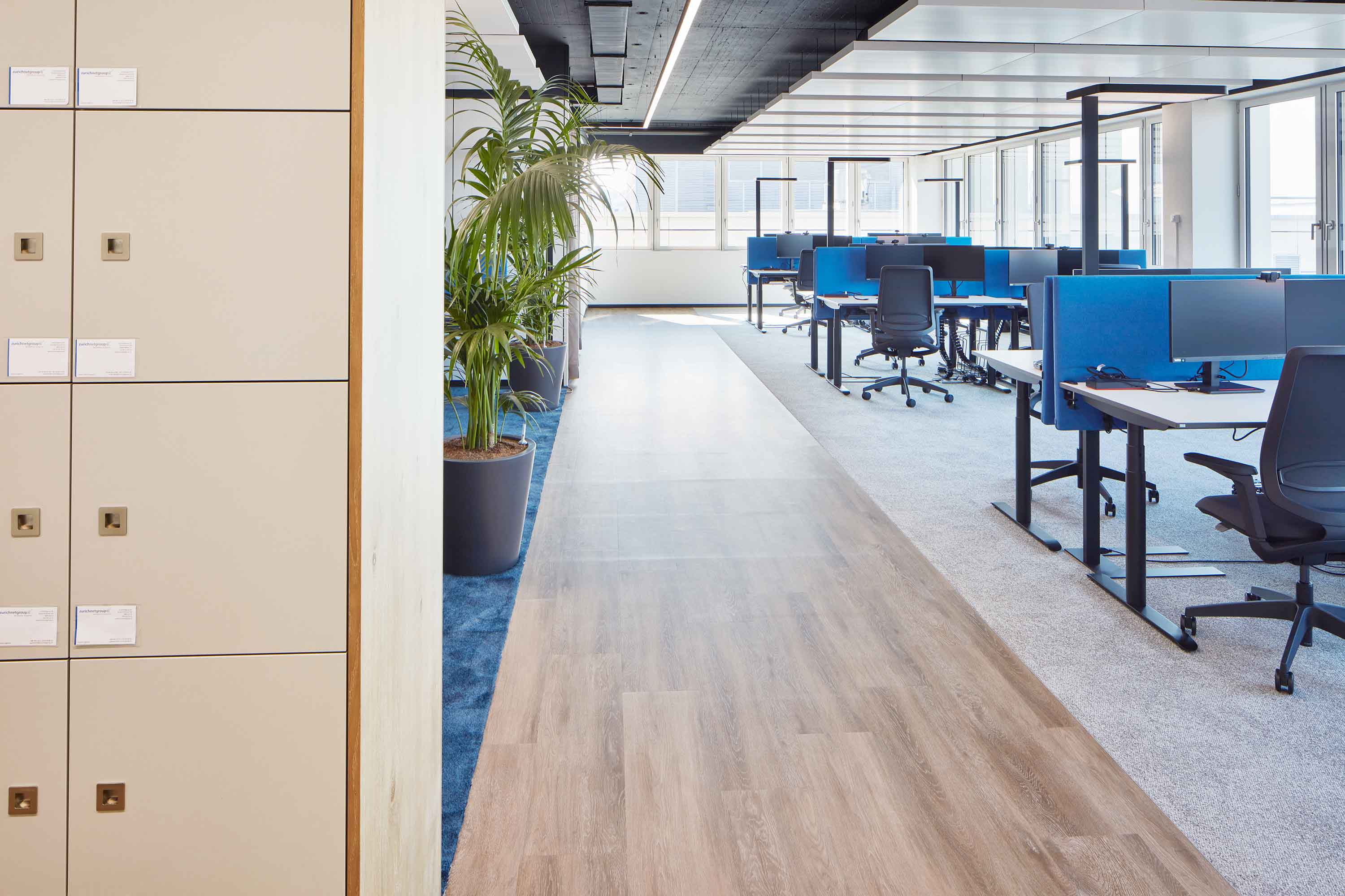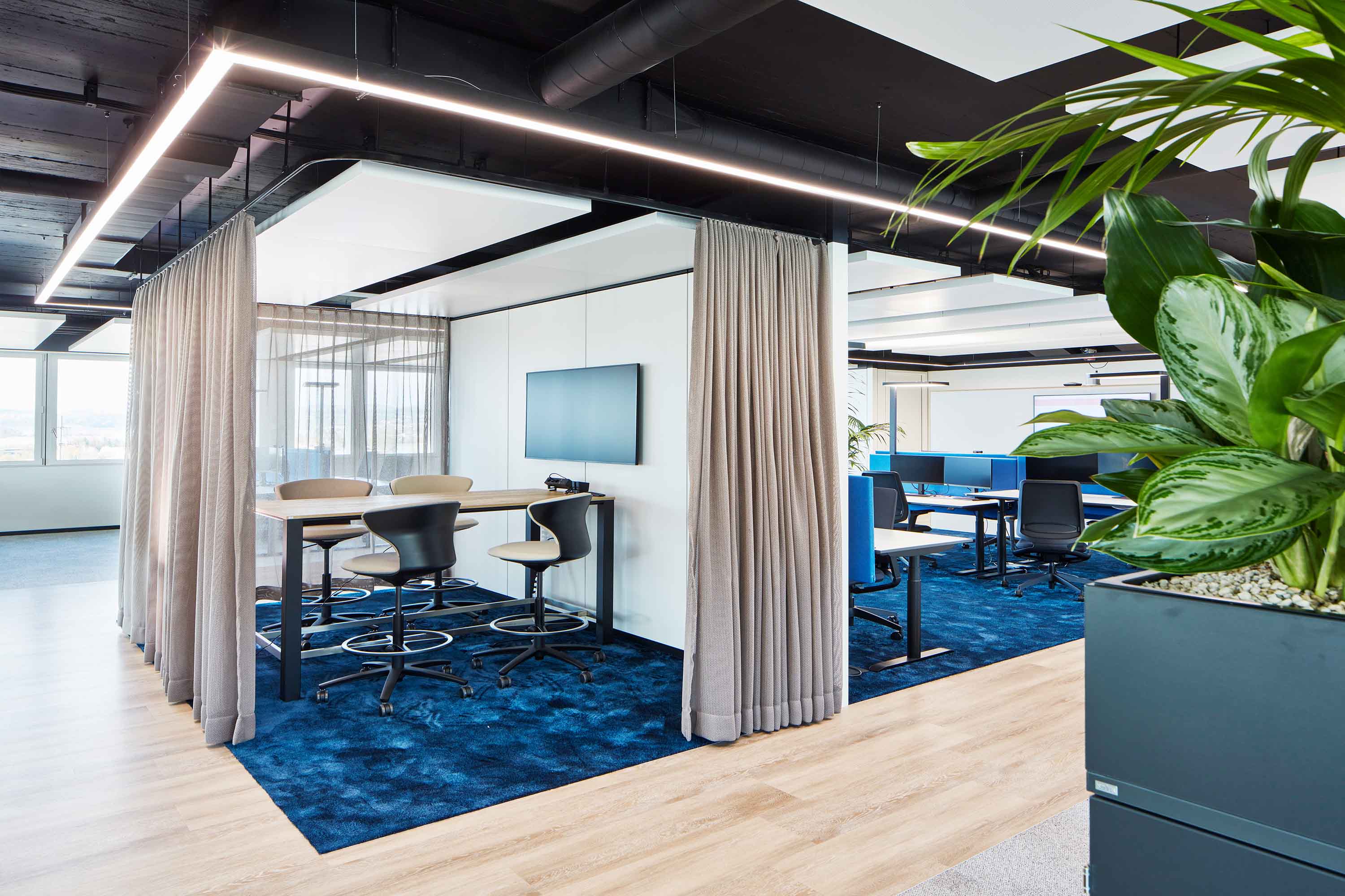 Entstanden ist eine Arbeitswelt, die perfekt auf die Bedürfnisse der Mitarbeitenden abgestimmt ist. Die klare Designsprache und der Einsatz von Holz und eleganten Farbtönen spiegeln die Firmenwerte wider und tragen subtil zur Unternehmensidentifikation der Mitarbeitenden bei.
