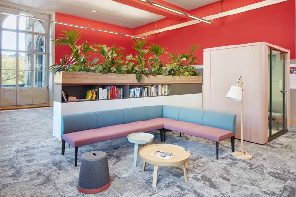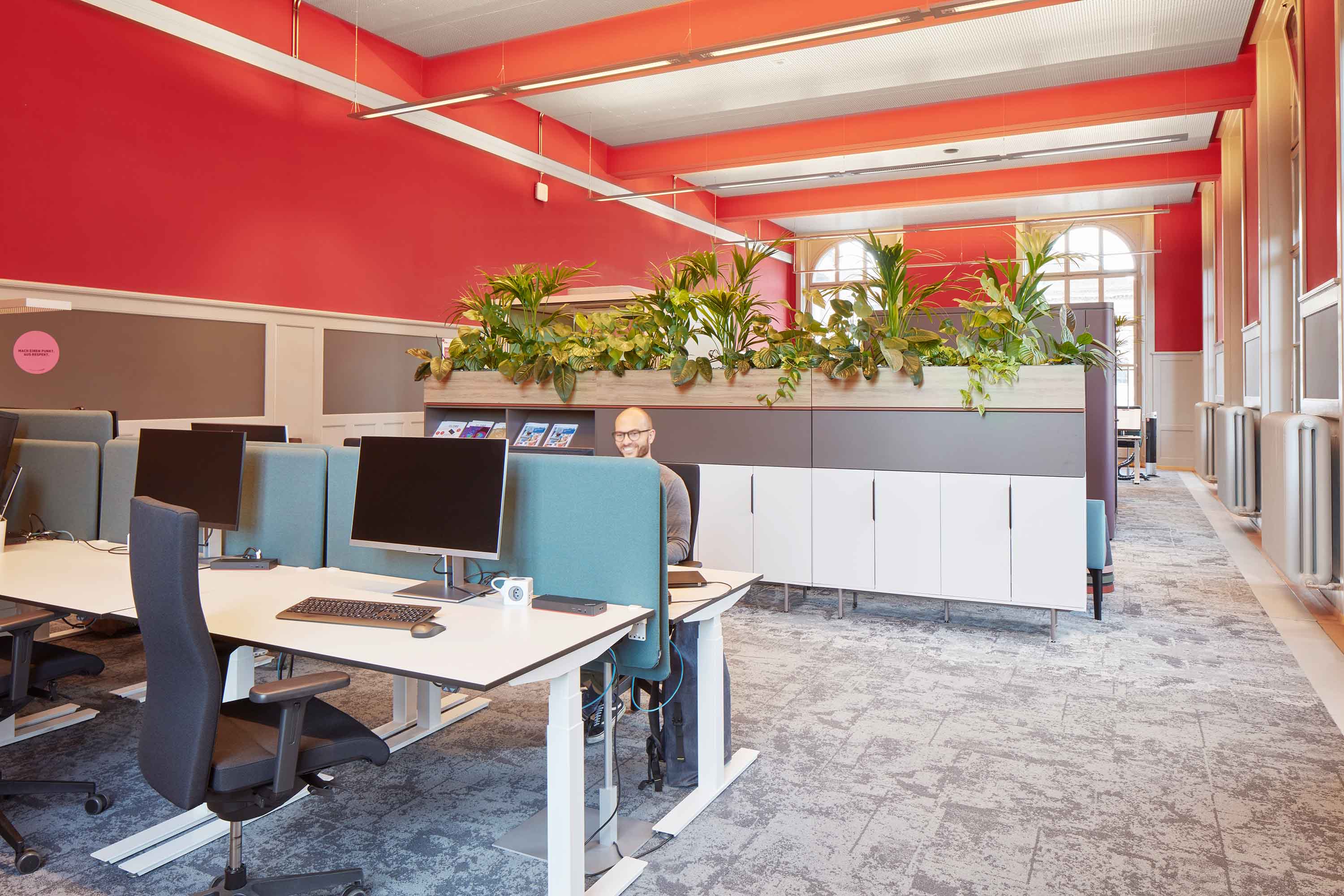 Nach einer intensiven Beratung und Planung zu Themen wie nutzerbasiertem Arbeiten, Kollaboration, Akustik und Raumatmosphäre sind Flächen entstanden, die neue Arbeitsmodelle zulassen und die Mitarbeitenden perfekt in ihrer täglichen Arbeit unterstützen.