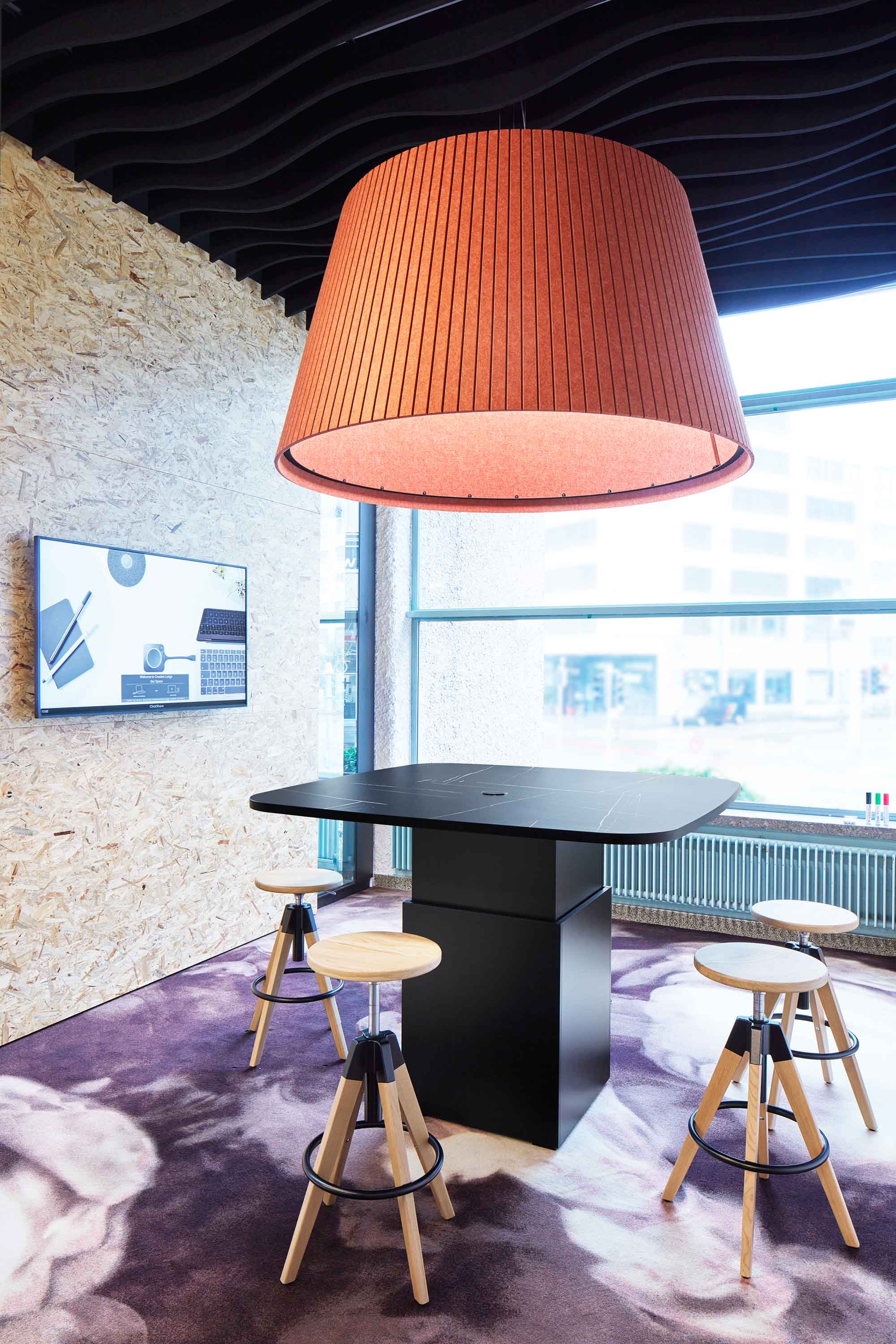 Der neue Hauptsitz von Trispace bietet ein völlig neues Kundenerlebnis. Es wurden inspirierende Mikroinfrastrukturen gebaut, die den Mitarbeitenden bislang nicht gekannte Möglichkeiten für das Activity-Based-Working geben. Ziel des neuen Living Showrooms ist es, die Arbeit von Trispace als Arbeitsplatzspezialist sichtbar zu machen. Nebst einer grossen Diversität an Gestaltungselementen wurden auch Themen wie Raumakustik, Technologie zum vernetzten Arbeiten oder der Umgang mit Licht in Arbeitswelten eindrücklich umgesetzt.