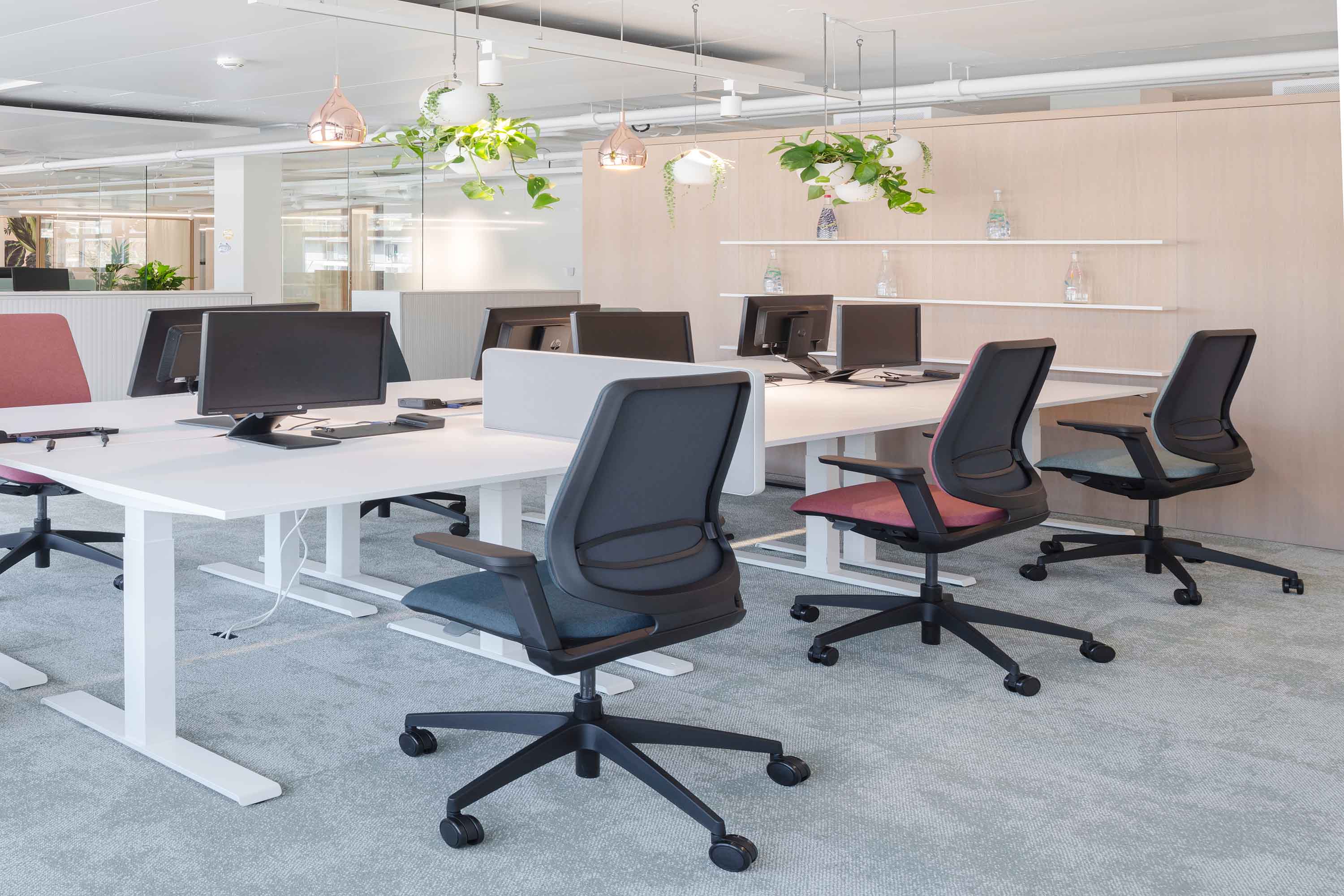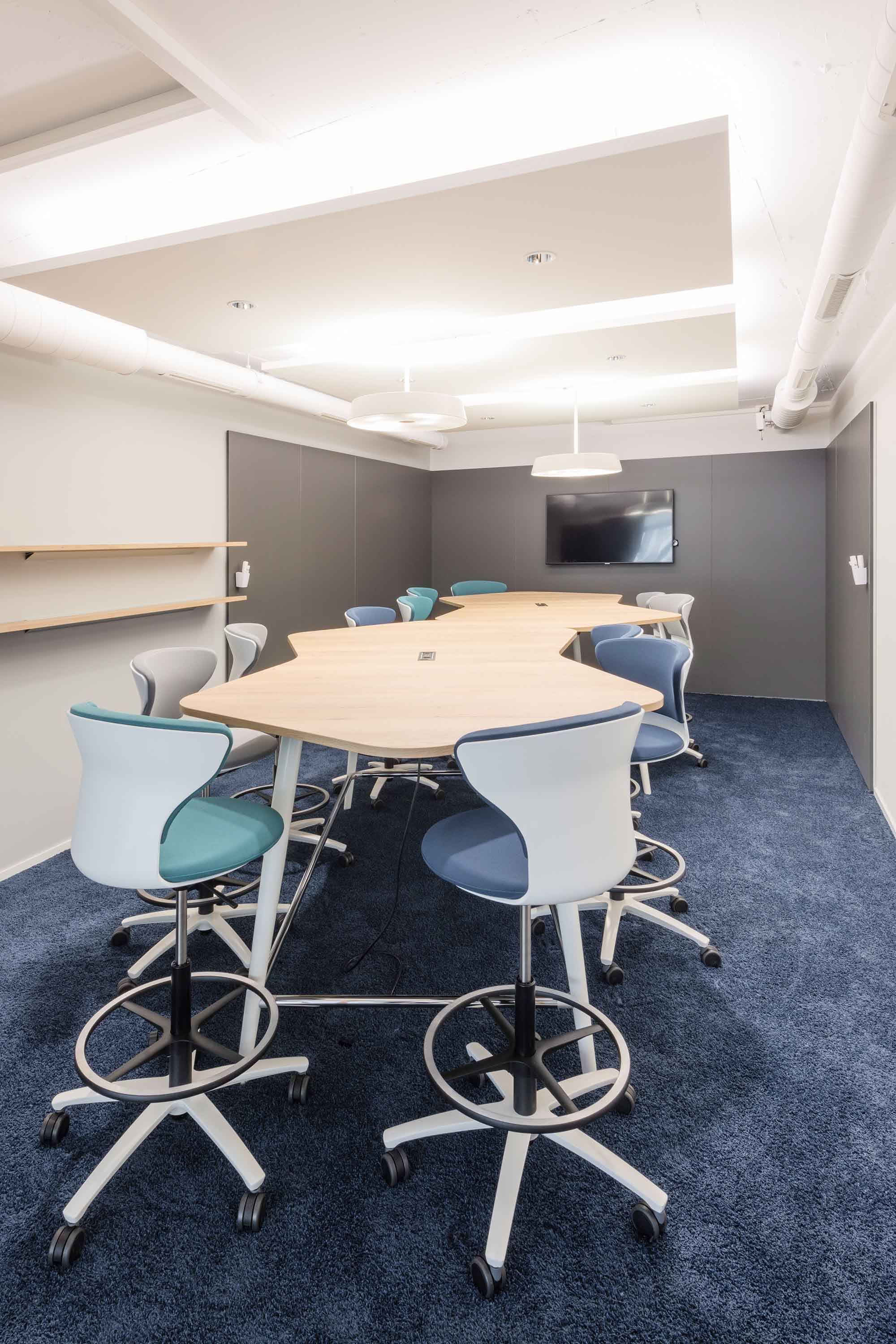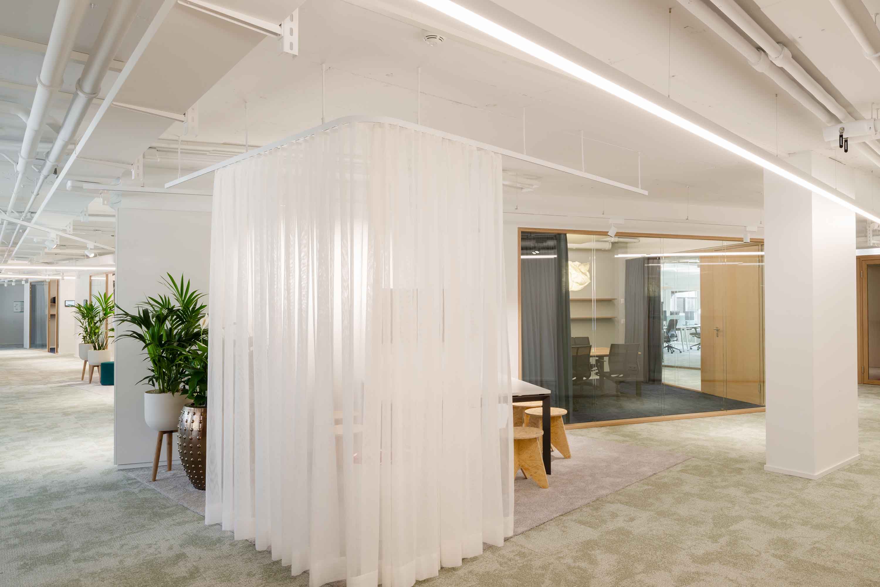 Auf über 1300 m² Bürofläche stehen 80 flexibel nutzbare Arbeitsplätze sowie ein grosses Angebot an Kollaborationsflächen für unterschiedlichste Tätigkeiten zur Verfügung. Neben der Büroeinrichtung entschied sich die Danone AG für Sichtschutz- und Akustikmassnahmen von Trispace.