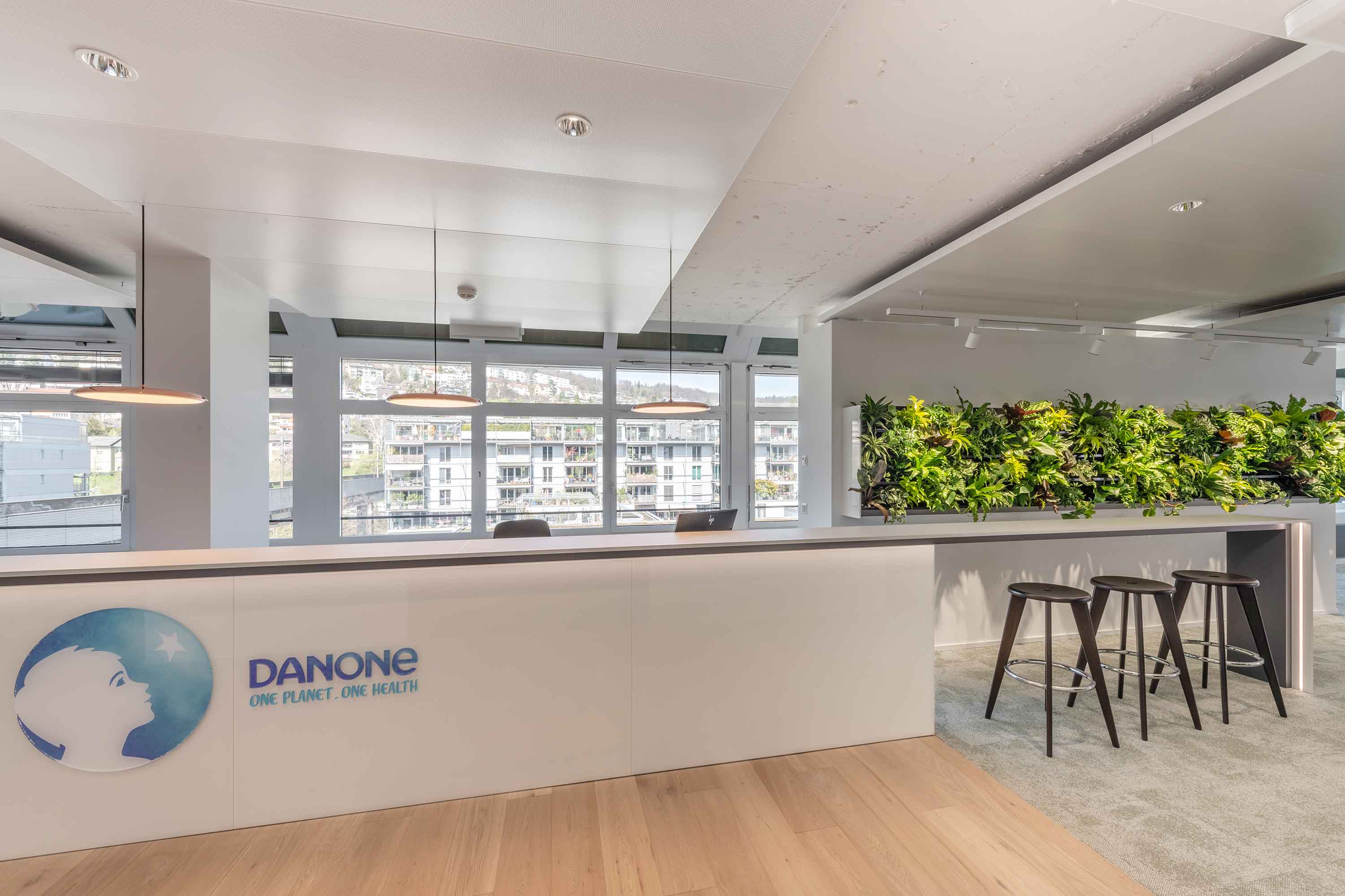 Der Danone-Konzern mit Sitz in Paris ist weltweit eines der grössten Unternehmen im Nahrungsmittelbereich. Trispace realisierte für die Danone AG neue Arbeitswelten an der Hardturmstrasse in Zürich. Die zentral gelegenen Büros werden von den Mitarbeitenden der Tochterunternehmen Volvic, Evian, Milupa und Nutricia sowie deren Besuchenden genutzt.