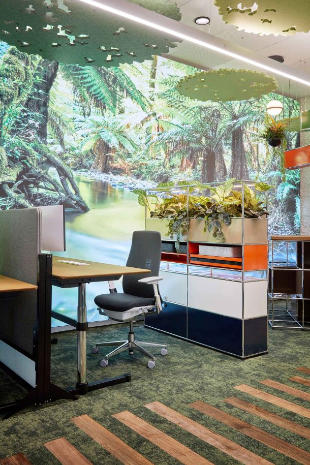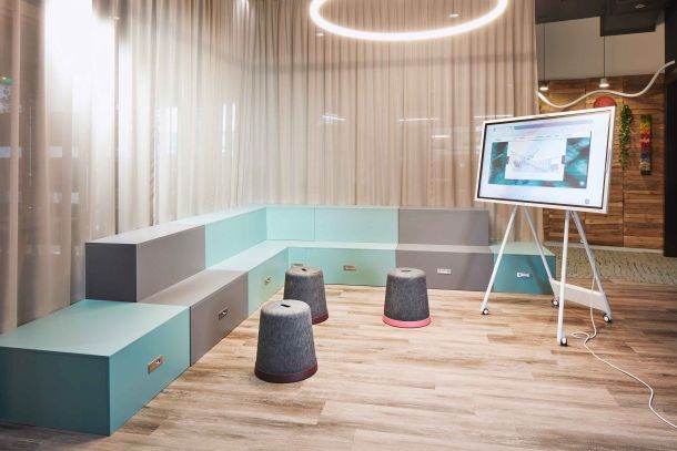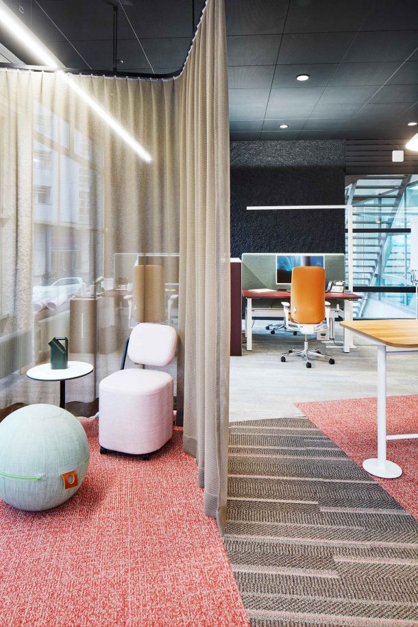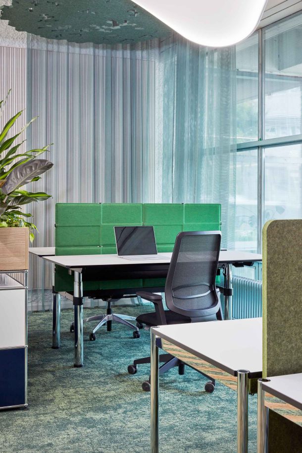 Der neue Hauptsitz von Trispace bietet ein völlig neues Kundenerlebnis. Es wurden inspirierende Mikroinfrastrukturen gebaut, die den Mitarbeitenden bislang nicht gekannte Möglichkeiten für das Activity-Based-Working geben. Ziel des neuen Living Showrooms ist es, die Arbeit von Trispace als Arbeitsplatzspezialist sichtbar zu machen. Nebst einer grossen Diversität an Gestaltungselementen wurden auch Themen wie Raumakustik, Technologie zum vernetzten Arbeiten oder der Umgang mit Licht in Arbeitswelten eindrücklich umgesetzt.