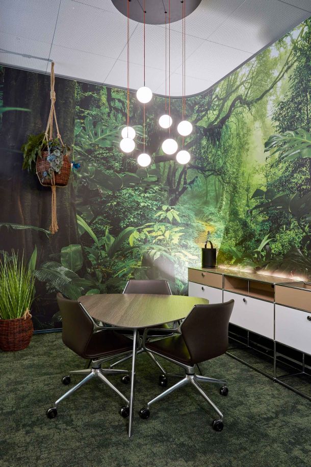 Auf rund 1000 m² wurden Themen wie Biophilic Design, Kreativitätsförderung und vernetztes Teamarbeiten in positiven Räumen umgesetzt. Um diese Investition in die Zukunft mit möglichst vielen Personen teilen zu können, wurde ein Co-Working für alle Freunde von Trispace eingerichtet.