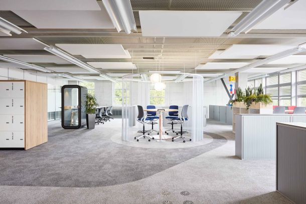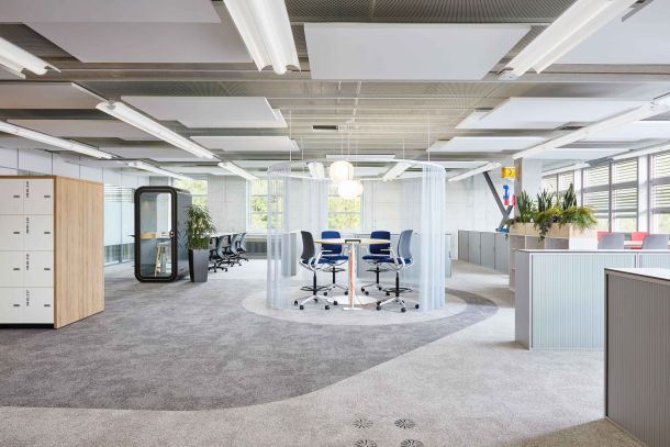 Der Standort Zürich Binz ist die Homebase von mehreren Entwicklungs- und Betriebseinheiten der Swisscom. Ziel des Projektes war eine Aufwertung der Office-Flächen, welche die Bedürfnisse an eine moderne, zeitgemässe Arbeitsumgebung erfüllt. Der Fokus lag darauf, den Mitarbeitenden für die verschiedensten Arbeitsbedürfnisse ein entsprechendes Flächenangebot zur Verfügung zu stellen (Kollaborationsflächen, Sitzungszimmer, Rückzugsmöglichkeiten, konzentriertes Arbeiten).