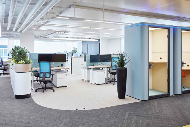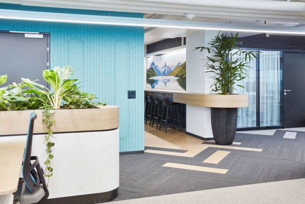 Ein international tätiger Rückversicherer wächst am Standort Zürich und benötigte zusätzliche Arbeitsplätze. Trispace entwickelte ein flexibles Arbeitsplatzkonzept, das sich auch in Zukunft erweitern lässt. Durch die Optimierung der Open-Space-Fläche entstanden neue Zonen für Zusammenarbeit sowie eine zusätzliche Hot-Desking-Area. Der bisherige Boardroom wurde zu einer multifunktionalen Fläche umgestaltet, die sich mit mobilem Mobiliar flexibel an unterschiedliche Nutzungen anpassen lässt.